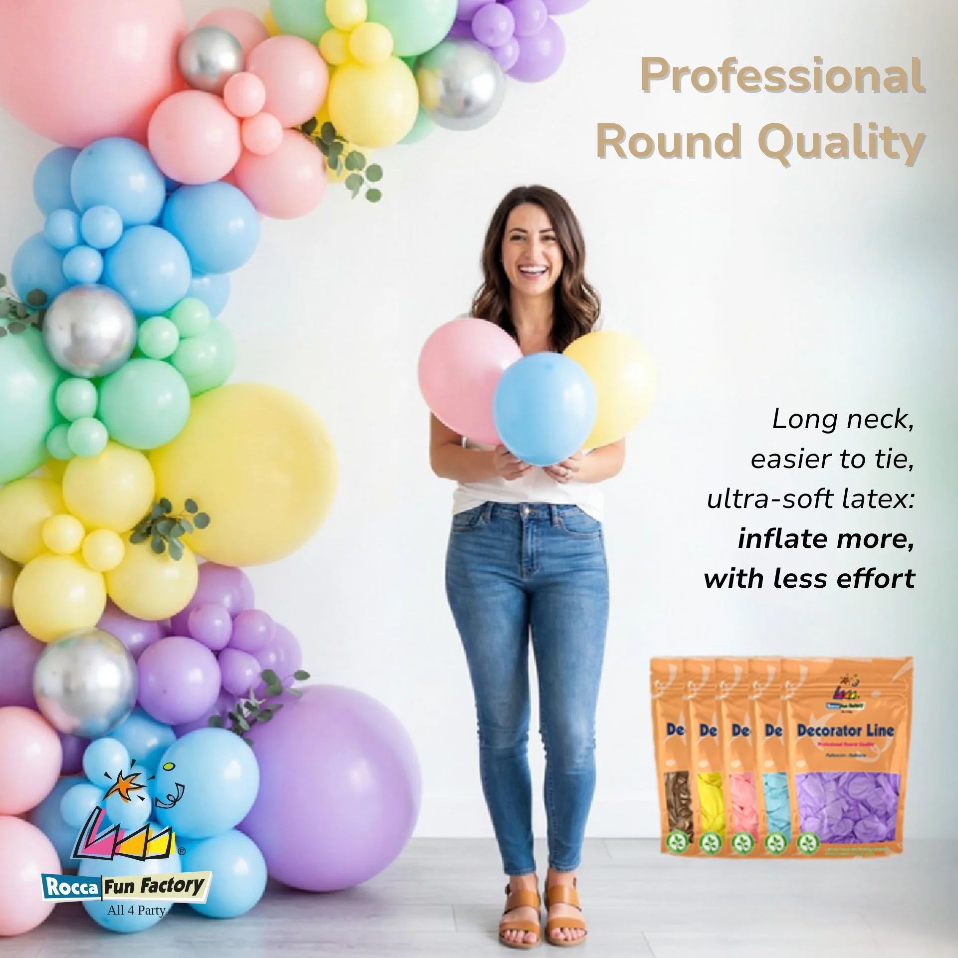 • Professional service – fast, dependable support for our customers With years of manufacturing experience and a strong focus on innovation and quality control, Rocca Fun Factory is committed to supporting the balloon and event decoration industry with products professionals can trust. Our product range includes: