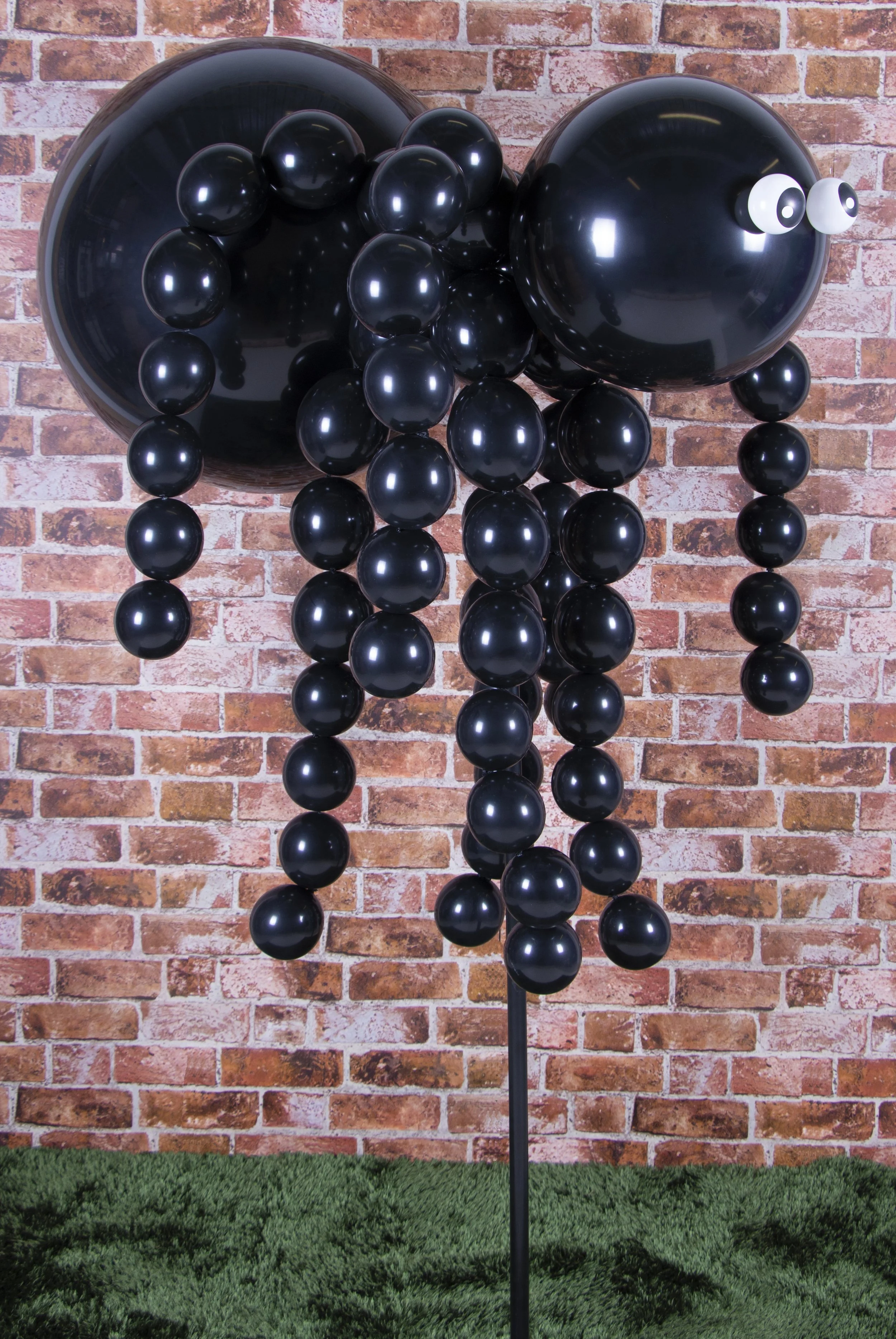 5. Create x 8 graduated garlands using 6 x 6” black link balloons in the following size order - 2 x 5”, 2 x 4”, 2 x 3”. Finish each with a 5” black balloon inflated to 3” (legs)